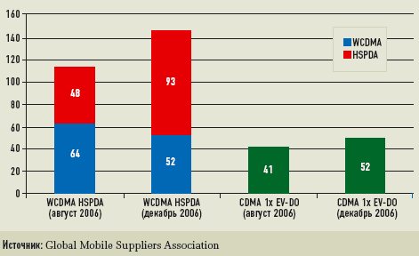 | Количество действующих сетей 3G с поддержкой различных стандартов |