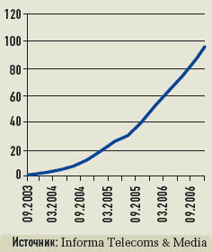 | Число подписчиков на услуги сетей WCDMA в мире, млн |