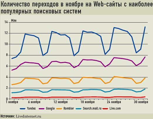 Рейтинги популярности российских поисковых систем — уже ни для кого не секрет, их можно найти во многих печатных изданиях и на сайтах. Если показатели таких рейтингов и различаются между собой, то очень несущественно. Скажем, в соответствии со статистикой, опубликованной в июле на Liveinternet.ru, наибольшей популярностью пользуется «Яндекс», который назвали 59,8% опрошенных. За ним с довольно большим отрывом следует «Рамблер» (17,2%), потом Google и Mail.ru (12,2 и 6,8% соответственно). На остальные поисковые системы приходятся лишь 4% пользователей.