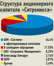 Вместе с тем, бизнес холдинга тесно связан с материнской компанией — АФК «Система». Как подчеркнул Миньковский, предприятия «Системы» представляют собой не более чем источник хороших референтных внедрений коммерческих продуктов и тестовую площадку для опробования передовых технологий в реальных условиях. Такая практика взаимодействия «родственных» бизнес-структур довольно распространена. Проблема состоит лишь в том, что в сознании инвесторов прочно укоренился миф о «кэптивности» российского ИТ-холдинга, якобы, созданного исключительно для обслуживания телекоммуникационных предприятий АФК «Система». И хотя Асланян утверждает, что по итогам 2007 года совместный бизнес с «Системой» дал меньше 20% доходов, руководству «Ситроникса» предстоит недюжинная работа для разрушения этих стереотипов. Далеко не последнюю роль может сыграть готовность компании активно сотрудничать с мировым информационным сообществом.