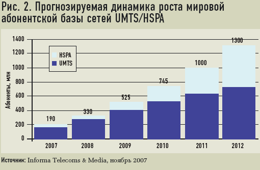 Аналитики Informa Telecoms & Media ожидают, что в 2009 году мировая абонентская база сетей HSPA превысит 25% таковой для сетей UMTS (рис. 2). Кое-кто из 110 млн этих счастливчиков успеет в полной мере оценить достоинства технологии HSPA+.