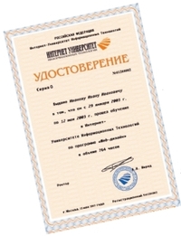 Internet-обучение по программам вузов сопряжено с некоторыми формальностями (нужно предоставить удостоверяющие личность документы, оформить договор и внести плату), зато выпускники получают диплом государственного образца. Сдавшим экзамены слушателям собственных курсов «Интуит» тоже выдает письменные удостоверения, но по ФЗ «О высшем и послевузовском профессиональном образовании» они не признаются в государственных учреждениях как достаточное свидетельство квалификации специалистов. Негосударственные организации руководствуются своими принципами подбора кадров, поэтому наличие у соискателя «неофициального» свидетельства вполне может быть занесено ему в актив.