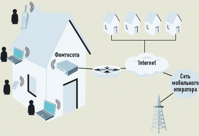 Фемтосоты — это небольшие базовые станции для организации беспроводной широкополосной связи в домашних условиях. Они улучшают прием сигналов внутри помещений и увеличивают пропускную способность. Когда пользователь говорит по телефону или работает в Internet через телефон либо ноутбук, оснащенный интерфейсом беспроводной широкополосной связи, трафик передается через фемтосоты сотовому оператору — в проводные широкополосные сети.
