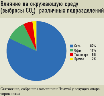 Крупные операторы связи выходят на первые позиции в своих странах по потреблению электроэнергии. По этому показателю British Telecom числится на первом месте в Великобритании (2,2 ТВт/ч в год), France Telecom — на втором месте во Франции (тоже приблизительно 2,2 ТВт/ч в год), а Telecom Italia — на втором в Италии (2,0 ТВт/ч в год). По статистике, полученной Huawei от ведущих операторов связи, из общего объема выбросов углекислого газа в атмосферу, к которым приводит их деятельность, 82% приходится на сетевое оборудование.