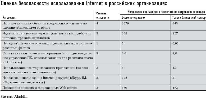 Таблица. Оценка безопасности использования Internet в российских организациях