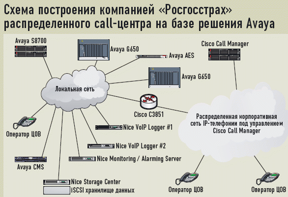 Схема. Схема построения компанией «Росгосстрах» распределенного сall-центра на базе решения Avaya