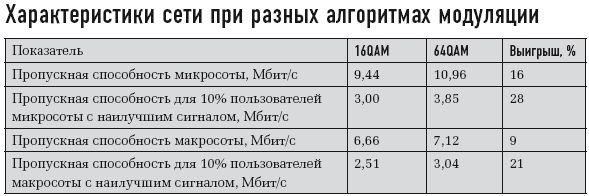 Таблица 1. Характеристики сети при разных алгоритмах модуляции