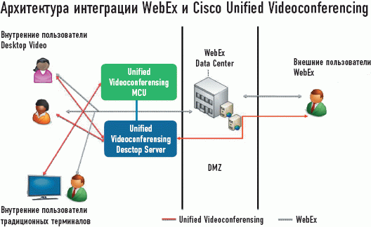 Схема. Архитектура интеграции WebEx и Cisco Unified Videoconferencing