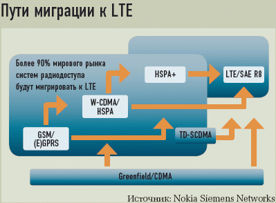 Например, к LTE можно перейти напрямую от GSM или CDMA, минуя этап UMTS/HSxPA, либо установить оборудование LTE в имеющихся телекоммуникационных стойках GSM/UMTS/CDMA третьих фирм. Однако наиболее предпочтительным с коммерческой точки зрения, утверждает Ильдар Хисматуллин, является сценарий, по которому внедрение новой технологии не приведет к немедленному отказу от применяемой ныне.