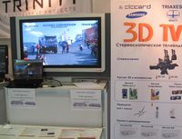 На выставке уже можно было увидеть решение для вывода 3D-изображения на автостереоскопический дисплей, позволяющий обходиться без очков. На стенде отечественной компании Elecard из Томска был представлен полный комплект оборудования для создания и трансляции 3D-сигнала. В него входят программный комплекс оцифровки изображений с двух видеокамер и преобразования обычного видеосигнала в объемное изображение, а также телевизионная приставка российской разработки, позволяющая воспроизводить 3D-контент.