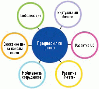 Кроме того, росту способствуют текущие тенденции развития общества и бизнеса. Одной из таких тенденций стала глобализация: сотрудники компаний постоянно общаются с коллегами, разбросанными по всему миру, и базовых средств коммуникации зачастую недостаточно для оперативного решения задач. Одно дело – побеседовать по телефону или ответить на электронное письмо и совсем другое – лично поговорить с человеком. Практика показывает, что современные решения ВКС способны полностью воспроизвести условия беседы при личной встрече. Не менее способствует росту рынка ВКС возникновение и расширение виртуального бизнеса, который требует более совершенных средств коммуникации.