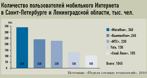 «МегаФон» стартовал в октябре 2007 года, запустив здесь первый в России сегмент коммерческой сети 3G (стандарт UMTS). В 2008 году к нему присоединились МТС и чуть позже — «ВымпелКом». В результате уже в прошлом году операторы сотовой связи достигли существенного покрытия сетью 3G Петербурга и ближайших пригородов, создав инфраструктуру для предоставления инновационных услуг широкому кругу компаний.