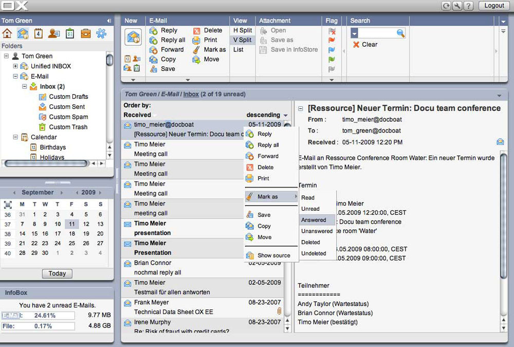 | Пользователи оценили удобство и информативность интерфейса почтового приложения Open-Xchange |
