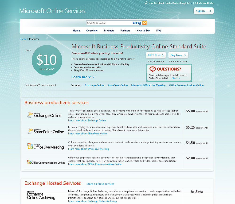 | Малым и средним предприятиям следует особое внимание обратить на облачные платформы совместной работы вроде Microsoft Business Productivity Online Services |
