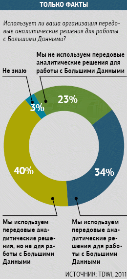 «Решение вопросов, связанных с управлением большими объемами данных, порождает серьезные трудности, – отметил аналитик TDWI и автор отчета Филип Рассом. – Причем, в отличие от традиционных технологий бизнес-анализа и хранилищ данных, с Большими Данными возникает гораздо больше осложнений».