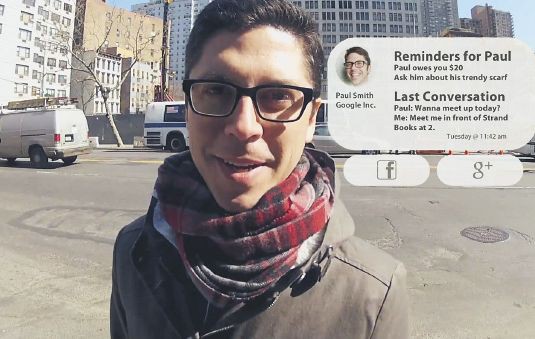 А теперь перейдем к технологии распознавания лиц. Пока речь шла о распознавании лиц на фотографиях или видео, особого повода для беспокойства у нас не было. Но если устройство Google Glass поддерживает постоянную связь с сервером, система распознавания может работать в режиме реального времени. Пользователь шарит глазами в толпе, а на экран выдается информация об обнаруженных друзьях или друзьях друзей в Google+. Телефонные приложения подобного рода уже существуют, но очки могли бы упростить их использование на постоянной основе.