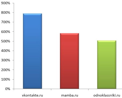 Годовой прирост российских пользователей социальных сетей за счет Opera Mini в 2008 году:
