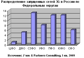 По данным J'son & Partners Consulting, на конец I кв. 2009 года в России операторы «большой тройки» анонсировали запуск 57 сетей третьего поколения (UMTS/W-CDMA). Одной из наиболее заметных новостей в данной области за последнее время стал выход этих операторов на московский рынок. По мнению J&P Consulting, не смотря на наличие конкуренции на московском рынке предоставления услуг высокоскоростного мобильного доступа в Internet со стороны таких компаний как «Скай Линк», Yota и «Комстар-ОТС», 3G-сервисы, которые будут предоставлять операторы «большой тройки», также найдут своих потребителей. По оценке J&P Consulting, привлечение абонентов в UMTS-сети будет во многом обусловлено распространением 3G-телефонов.