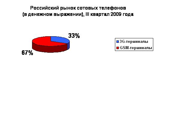 Продажи 3G-терминалов в третьем квартале 2009 года составили около 13% всего российского рынка мобильных телефонов в натуральном исчислении и около 33% – в денежном. 96% рынка 3G-терминалов заняли компании Nokia, Samsung Electronics и Sony Ericsson.