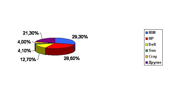 Среди поставщиков HPC-систем по итогам 2009 года лидирует IBM, продажи оборудования которой составили 2,53 млрд долл. Это соответствует рыночной доле в 29,3%. Вторую позицию занимает Hewlett-Packard с показателем в 2,47 млрд долл. (28,6%). Далее следуют Dell с 1,1 млрд долл. (12,7%) и Sun с 350 млн долл. (4,1%). Замыкает пятерку лидеров Cray, выручка которой от реализации НРС-серверов составила 345 млн долл. (4%).