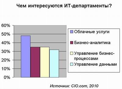 Облачные услуги возглавили список технологий, наиболее активно изучаемых ИТ-подразделениями компаний на предмет дальнейшего внедрения. Что интересно, опрошенные компании продемонстрировали раскол на две практически равных группы относительно основной цели планируемых инвестиций. 49% из них фокусируется на изменении бизнес-процессов и создании предпосылок для роста прибыли. 51% по-прежнему заняты экономией: в их цели входят снижение операционных издержек и построение более эффективной ИТ-инфраструктуры. В среднем, около трети бюджетов будет освящена новым разработкам.