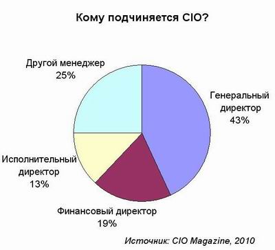 Непосредственно генеральному директору компании подчиняется лишь 43% ИТ-директоров. Очевидно, первые лица организаций в большинстве либо не желают, либо не видят смысла лично курировать работу ИТ. Почему же именно финансовому директору чаще других доверяют контроль работы ИТ-департамента? Аналитики предполагают, что такое положение вещей сложилось исторически. Дело в том, что изначально главной задачей ИТ-отделов была автоматизация именно финансовых служб. Зачастую ИТ-отделы даже являлись частью финансового департамента.