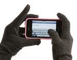 В Америке стали продавать зимние перчатки Agloves для работы с сенсорными экранами. Необходимость такого аксессуара возникла вследствии отличия электропроводимости пальцев и обычных перчаток -- в результате популярные сейчас емкостные экраны телефонов не распознают нажатия. В Agloves «совместимость» обеспечивает ткань X-Static (специальная пряжа с серебрянными нитями, обеспечивающая при нажатии параметры, схожие с таковыми у пальцев). Цена — 18 долл. Согласитесь, это совсем недорого за возможность не снимать перчатки в мороз, чтобы набрать SMS?