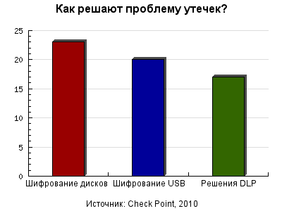 Говоря о ближайших планах, почти четверть компаний заявила, что в ближайшем году намерена ввести шифрование жестких дисков. Среди других популярных средств усиления безопасности – шифрование USB-устройств и внедрение систем предотвращения утечки данных (DLP).