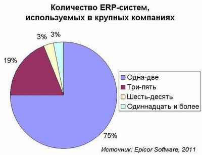 Хотя 59% крупных компаний при внедрении ERP-систем являются приверженцами единого корпоративного стандарта, только половине из них на самом деле удалось добиться внедрения выбранного решения в большинстве филиалов. Таким образом, как показывает исследование, проведенное Epicor Software, волей-неволей им приходится обращаться к двухуровневым решениям.
