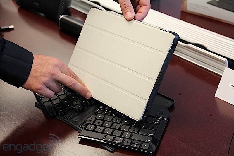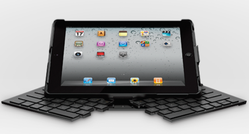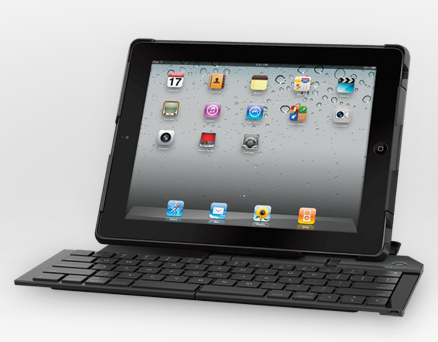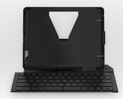 Для того, чтобы занимать меньше места, клавиатура делится на две части, а при необходимости раскладывается. Аксессуар соединяется с iPad по Bluetooth, при этом планшет устаналивается особым образом - получается своеобразный мини-ноутбук. Что радует, при этом для защиты экрана можно использовать популярные чехлы Smart Cover от Apple. Заряжается клавиатура по USB.