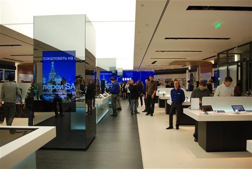 Расположение магазина – претенциозно, - это легендарная Тверская, первый этаж комплекса Summit, с удобным подъездом и парковкой для клиентов. По задумке компании клиент сможет не только окинуть взглядом стеллажи с продукцией, но и протестировать технику в условиях, приближенных к «боевым» - сидя в кресле в отдельном закрытом помещении. В особых демонстрацилонных залах будет создана уютная атмосфера для полноценного знакомства с выбранным продуктом. В салоне будет организована и зона «беспроводных сетей», в которой можно вдоволь побаловаться с различными устройствами и испробовать их коммуникативные функции.