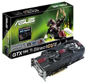 Выпущенная ограниченным тиражом видеокарта ASUS GTX 560 Ti с 448 CUDA-ядрами DirectCU II представляет собой ускоренную версию nVidia GeForce GTX 560 Ti с 384 CUDA-ядрами, и близка по производительности к референсной GTX 570 с 480 CUDA-ядрами. Частота графического процессора карты составляет 732 МГц, а памяти – 3,8 ГГц. Объем памяти – 1280 Мбайт при 320-битной шине памяти.