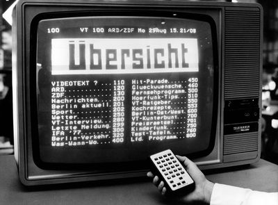 Телетекст (в Германии — «видеотекст») был представлен в 1977 году. С помощью этой технологии, завоевавшей затем огромную популярность в Европе, на телеэкраны доставлялись новости, прогнозы погоды, спортивные сводки, телепрограммы и другая инфомация. На пике популярности сервиса практически все европейские телестанции транслировали телетекст, и лишь теперь он вытесняется услугами цифрового ТВ.