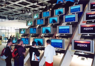 Корпорация Sharp была одной из пионеров рынка ЖК-телевизоров. Стена тонких плоскопанельных телевизоров, выставленная на стенде Sharp на IFA в 2003 году, привлекла к себе массу внимания. Впоследствии этот способ демонстрации был многократно повторен, и сегодня трудно себе представить выставку потребительской электроники без подобной «телестены».
