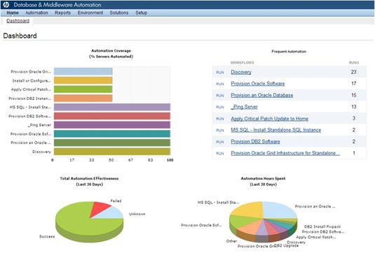 Программное обеспечение HP Database and Middleware Automation автоматизирует управление базами данных и многими связующими программами, которые обращаются к базам данных Oracle, Sybase, Microsoft SQL Server и IBM DB2, а также к серверам приложений IBM WebSphere и Oracle WebLogic. Программное обеспечение версии 10 хорошо стыкуется и с другими пакетами в рамках CloudSystem Enterprise Starter Suite. С помощью Operation Orchestration, например, администратор напрямую обращается к технологическим процессам любой базы данных или к операциям управления связующим ПО.