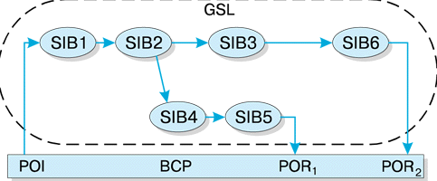 Блоки SIB обеспечивают выполнение стандартных многократно используемых сетевых функций. Базовый процесс обработки вызовов является специализированным SIB, который взаимодействует с другими блоками посредством точек инициации и завершения. Если в процессе обработки вызова встретится одна из точек инициации, то это приводит к определенной последовательности обращений к блокам SIB. По завершении этой последовательности обращений осуществляется воздействие на процесс обработки вызова, зависящее от точки завершения. В результате такого взаимодействия может быть обеспечена услуга или компонент услуги. Таким образом, BCP описывает процесс обработки вызовов базовой сети связи из которой осуществляется запрос на услуги IN. Определенные на первом уровне INCM, услуги декомпозируются на компоненты и на плоскости GFP, объединяются в один или несколько SIB, которые при взаимодействии определяют глобальную логику услуги GSL (Global Service Lojic). На рис. 4 показан процесс взаимодействия GSL и BCP осуществляемый через точки POI и POR.