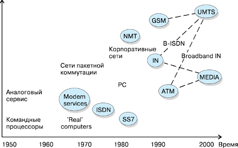 В рассмотренном примере отчетливо обозначена тенденция дальнейшего взаимопроникновения независимо развиваемых концепций IN и систем подвижной связи. В следующем разделе это положение подтверждается на примере перспективной системы UMTS.