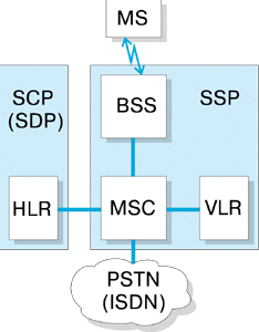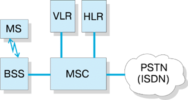 Мобильная станция обеспечивает доступ абонента в сеть и может быть реализована в портативном "карманном" виде либо в виде автомобильного телефона. Базовая станция обеспечивает радиоканалы для связи с мобильными станциями в пределах территории одной соты и подключена наземными каналами к MSC, который в свою очередь обеспечивает предоставление сетевых услуг, в том числе связь с сетями ISDN и PSTN, и управление функциями мобильной связи - маршрутизация вызовов, роаминг, перемещение вызова (handover) и др. Визитный и опорный регистры местонахождения (VLR и HLR) являются по сути сетевыми базами данных, содержащими необходимую информацию об абонентах. Опорный регистр HLR используется несколькими MSC, и когда абонент перемещается в зону действия нового MSC, информация о нем передается из HLR для временного хранения и использования в соответствующий визитный регистр VLR.