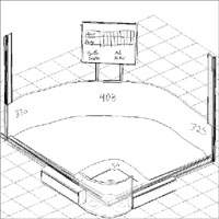 Хотя в принципе распознавание речи может использоваться для подачи команд и вообще для неограниченного текстового ввода, соответствующая технология еще недостаточно зрела, чтобы действительно широко применяться. И привлекательность, и трудность реализации распознавания непрерывной жестикуляции и речевого ввода определяются тем, что при этом очень нелегко производить разбивку на значимые лексемы и однозначно выделять такие компоненты, как глагол, существительное и модификаторы. Боб Железник (Bob Zeleznik) со своими коллегами в Brown University недавно продемонстрировал 3D-интерфейс моделирования, который полностью полагается на ввод геометрических эскизов и команд вручную и имеет словарь, включающий более 20 жестов [9]; они уже расширили этот тип интерфейса, с тем чтобы включить взаимодействие "с двух рук" и тем самым обеспечить хорошую комбинацию методов [8]. Эта система, Sketch [9], использовалась для создания трехмерной модели бейсбольного поля (рис. 2).