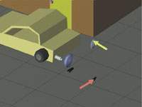 Sketch использует довольно примитивную и дающую не слишком много реализма технику рендеринга, которая делает вид 3D-модели похожим на неформальный рисунок, состоящий из линий. На рис. 3 изображены два автомобиля и показано, как контур выхлопного дыма вместе с его тенью может быть позиционирован в 3D-пространстве, что делается двумя руками с помощью красного и желтого управляющих курсоров. Хотя по сравнению с WIMP-интерфейсом кривая обучения первоначально идет более круто, опыт пользователя может сильно облегчить познавательное усилие.