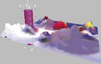 Существует целый ряд различных приложений, которые легко могут быть добавлены к системе. Некоторые из них включают автоматическое раскрашивание ландшафтов, обеспечивающее более реалистичное изображение. Векторные поля могут применяться для создания эффекта снежных бурь при изменяющейся во времени заливке белым цветом вершин сетки. Скорость заливки и плотность наложения цвета зависят от числа вершин и могут быть уставлены либо пользователем в интерактивном режиме, либо с помощью специально выбранных функций. Векторные поля могут также использоваться для поиска в сетке фрагментов, отличающихся особенностью или неоднородностью геометрии. В этих местах с помощью векторных полей можно закрасить вершины сетки зеленым цветом для имитации перевалов и долин. Кроме раскрашивания ландшафтов, векторные поля могут быть использованы со специальными приложениями для моделирования течения жидкости, воздушных вихрей, а также рек. Пользователь может добавить эти средства в анимационные системы для включения таких динамических объектов в сложную анимацию. Они являются прекрасным инструментом при создании рекламы, мультипликации, а также в научном моделировании.
