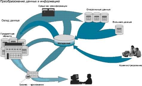 ![]() Рис. 1. Переход от данных к деловой информации с помощью хранилища данных |