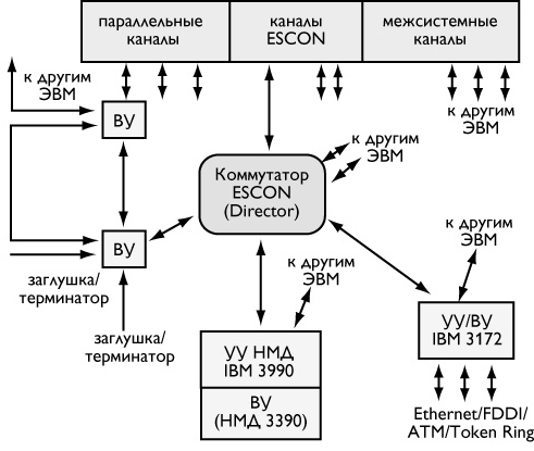 Рисунок 1. Подсоединение внешних устройств к S/390