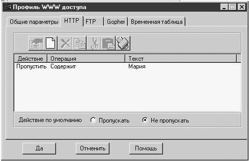 WWW-протоколы (HTTP, HTTPS, Gopher и FTP) являются одними из наиболее часто используемых в Сети. В межсетевом экране Aker все они могут поддерживаться как при помощи пакетного фильтра, так и при помощи proxy сервера. Второй вариант гораздо более предпочтителен, поскольку обеспечивает аутентификацию на уровне пользователя и возможность фильтрации URL как отдельных конструкций. Для