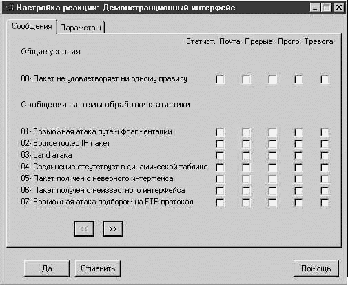 Кроме того, для каждого правила можно задать порядок действия системы при появлении пакета, удовлетворяющего данному правилу - просто записать в файл статистики, послать сообщение оператору и т.д.