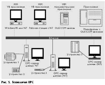 Благодаря технологии OPC интеграция компонентов в гетерогенные системы становится чрезвычайно простой (рис. 5). Серверы OPC обеспечат стандартный способ передачи информации в программу визуализации, базы данных и т.д.