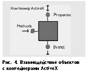 Существуют три основных понятия, определяющих интерфейс и возможности взаимодействия объектов ActiveX с контейнерами: это Properties (данные), Methods (функции) и Events (события) (рис.4). Каждый из этих интерфейсов доступен из ActiveX Automation.