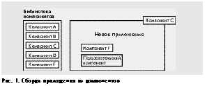 Один из наиболее многообещающих аспектов компонентной архитектуры - быстрая разработка приложений. Из накапливаемого набора компонентов в библиотеках можно собирать, как из деталей конструктора, требуемые цельные приложения (рис.1).