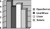 OpenServer. Несмотря на то, что программное обеспечение, применявшееся в тестах, было создано именно для этой ОС, она оказалась самой медленной при проведении расчета и в полтора-два раза уступала UnixWare при перестроении ссылок. А результаты теста на чтение вообще были совершенно неожиданными.