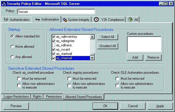Автоматизировать процесс поиска уязвимостей помогут средства анализа защищенности (Security Assessment System), также часто называемые сканерами безопасности (security scanner). Использование этих средств поможет определить уязвимости в корпоративной сети и устранить их до тех пор, пока ими воспользуются злоумышленники. Однако, если средств анализа защищенности, работающих на уровне сети и операционной системы, существует не один десяток, то средств, анализирующих базы данных намного меньше. На сегодняшний день всего два. Это система Database Scanner от Internet Security Systems, Inc. (http://www.iss.net) и система SQL Secure Policy компании BrainTree Security Software (http://www.braintree.co.uk, http://www.sqlsecure.com.).